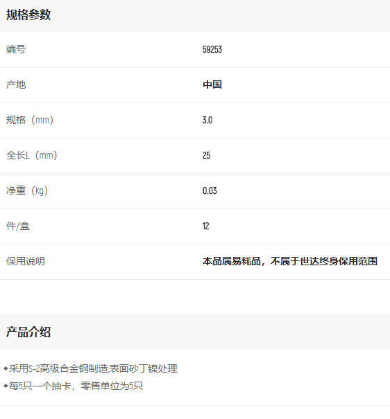 產(chǎn)品名字:世達6.3mm系列25mm長六角旋具頭3mm