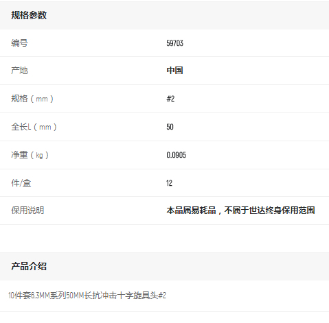 產(chǎn)品名字:世達(dá)10件套6.3MM系列50MM長(zhǎng)抗沖擊十字旋具頭#2