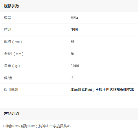 產(chǎn)品名字:世達(dá)10件套6.3MM系列50mm長十字旋具頭#3