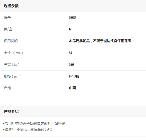 產(chǎn)品名字:世達(dá)6.3MM系列65MM長雙頭旋具頭PH1-PH2
