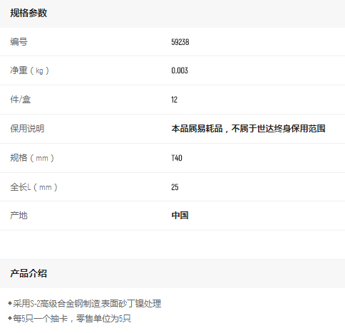 產(chǎn)品名字:世達(dá)5件6.3mm系列長花形旋頭T40