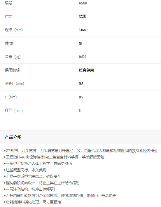 產(chǎn)品名字:世達(dá)G系列一字批3*60mm