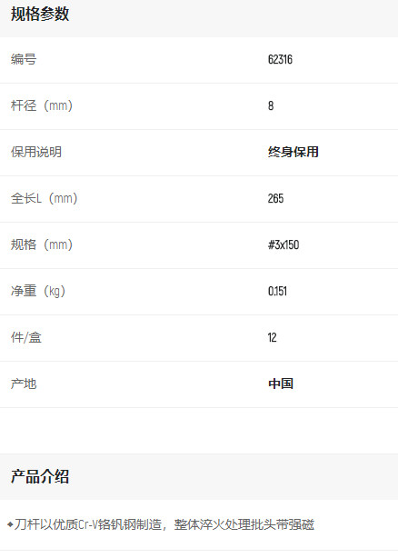首頁>產(chǎn)品中心>螺絲批>十字螺絲批>世達(dá)十字批#3x150mm