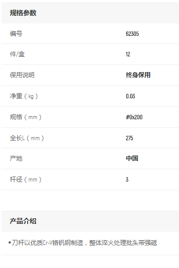 首頁>產(chǎn)品中心>螺絲批>十字螺絲批>世達(dá)A系列十字批#0*200mm